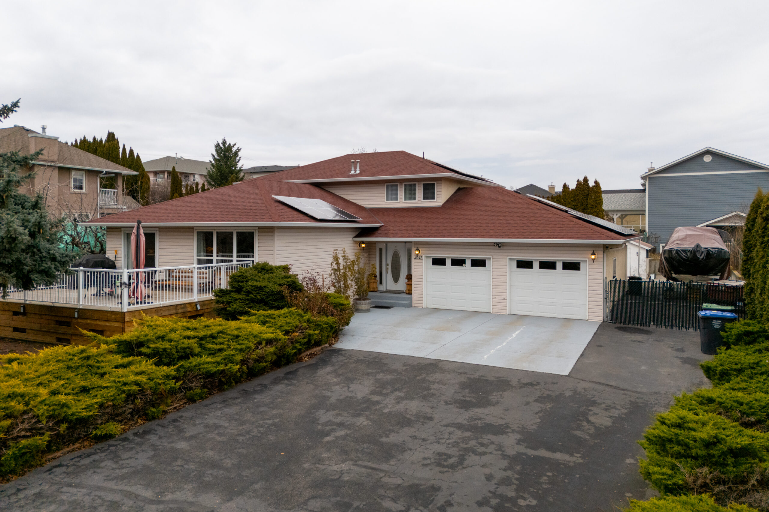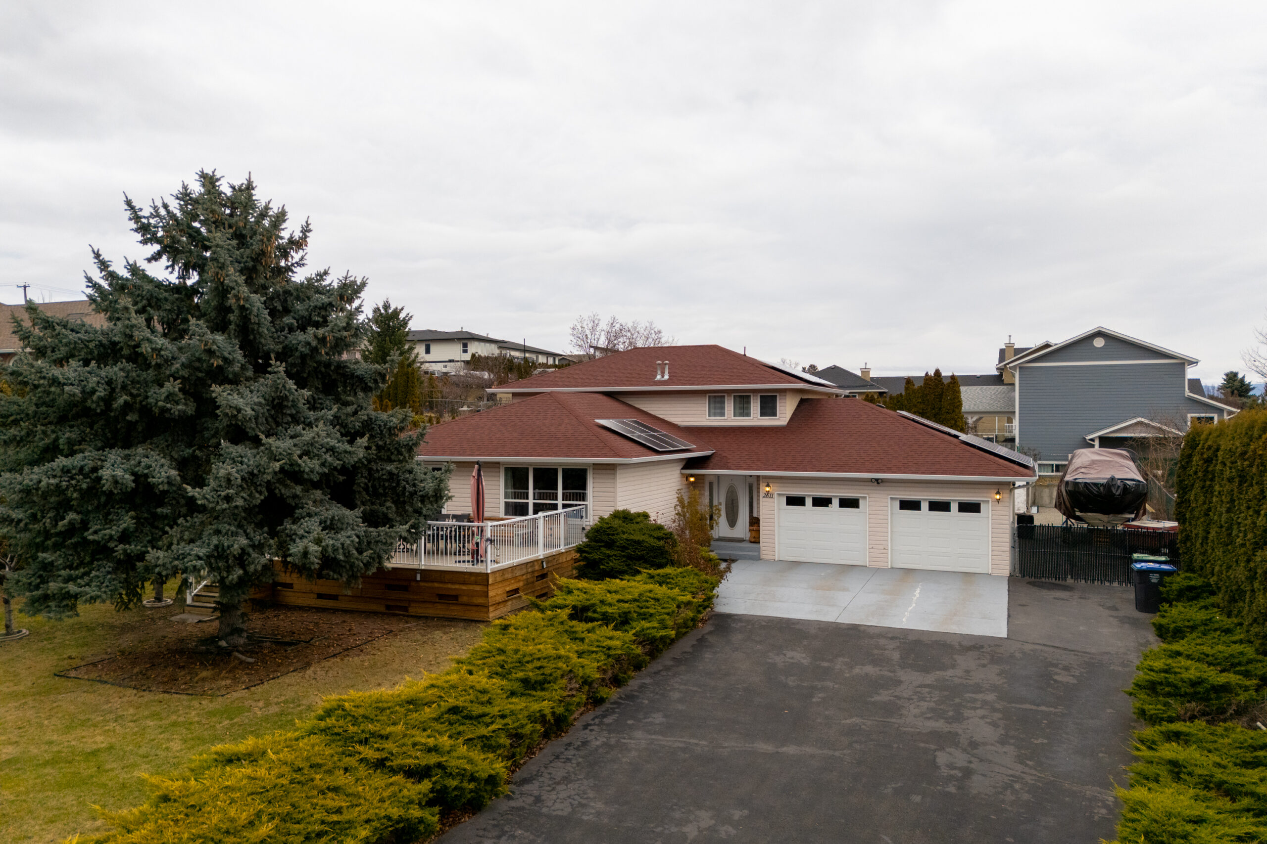 Looking for that perfect needle in the haystack? Congratulations! You just found it! This beautifully updated air-conditioned home sits on .39 acres of gorgeous fruit-treed, flat yard and garden space in Lakeview Heights. Located just down the hill from Grizzli winery and just off the wine trail. The estate-like driveway welcomes all your visitors and provides plenty of room for RVs, boats and the like. This updated energy-smart home is powered by solar panels, so there’s no need to worry about electric bills. With 4 bedrooms and 4 bathrooms, your family will have plenty of space to spread out. The updated kitchen is designed for entertaining, with plenty of counter space for meal preparation and hosting fantastic dinner parties. The living room is spacious enough for family gatherings and friendly get-togethers. When the sun comes out, it’s time to open the doors and move the guests outside to your private front deck. On rare rainy days, the covered back patio/sunroom makes a great space to enjoy the outdoors. Downstairs, there’s a newer full bathroom, newer flooring and a great open space for your finishing touches. If you like to have some space to work, you’ll love the extra-deep 20×30′ double car garage (with enough space for 2 vehicles and still room for workbenches and workspaces). This unique, hard-to-find, flat yard in Lakeview Heights also comes with U/G sprinklers, heritage grape vines, apple, cherry and Italian plum trees. Book your showing now before this one is gone!