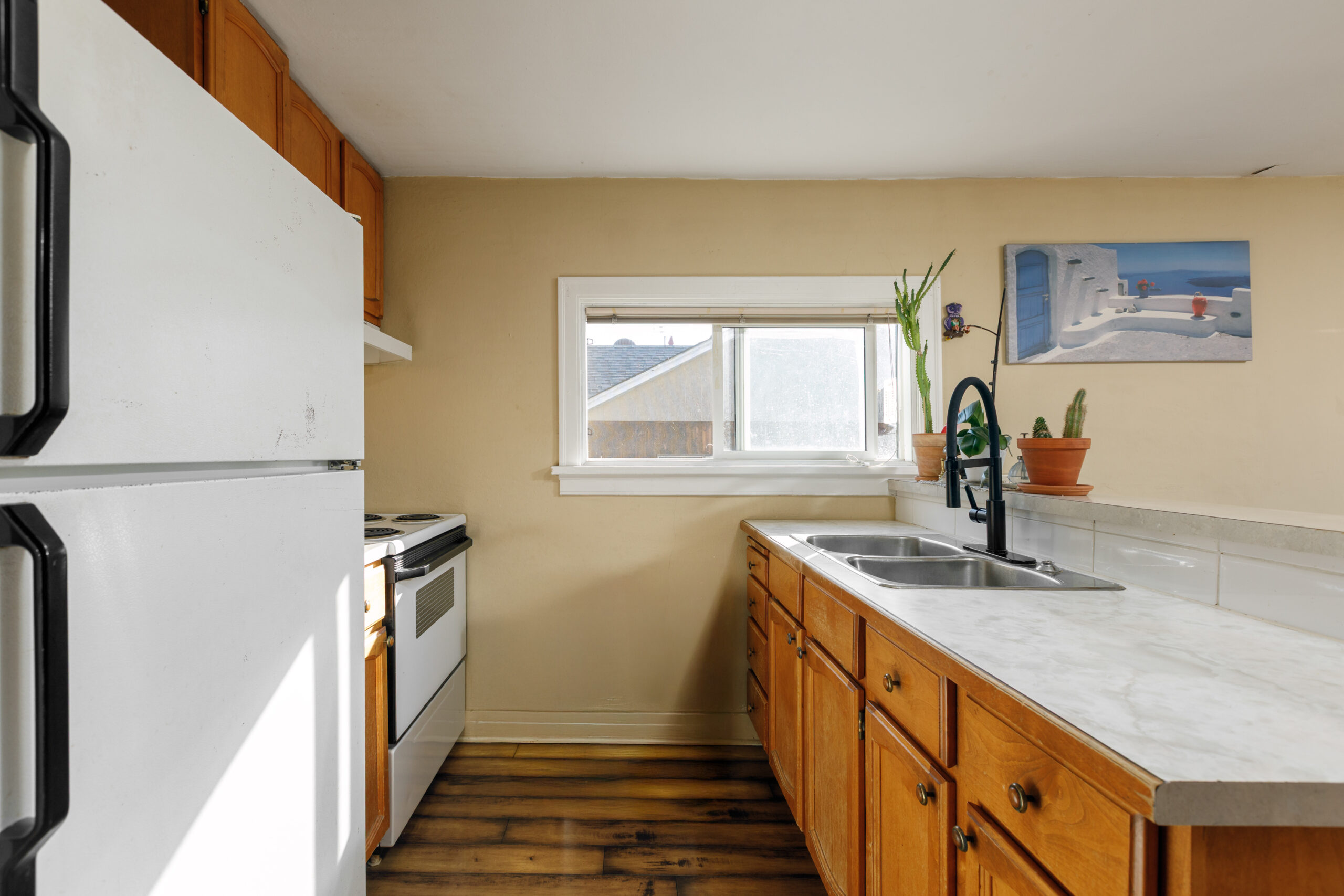 Affordable north end character home just a short walk to the beach, bars, restaurants and all the amenities downtown Kelowna has to offer! This 3-bedroom, 1-bath rancher-style home sits on a 40ft x 120ft MF1 lot, with a paved multi-use pathway out front and lane access out back. Main-floor laundry, fully fenced yard front and rear, a covered deck and storage sheds, including the original chicken coop/coal storage shed from the 1950’s! Forced-air furnace heating and a 5’8” (approx.) crawl space with stair access for ample storage, too. New power panel upgrade (2011), updated PEX plumbing (2011), new sewer line and connection (2019), new water service line (2019), new hot water tank (2022) and more. There’s more to do, so make this cute little home your starting point!